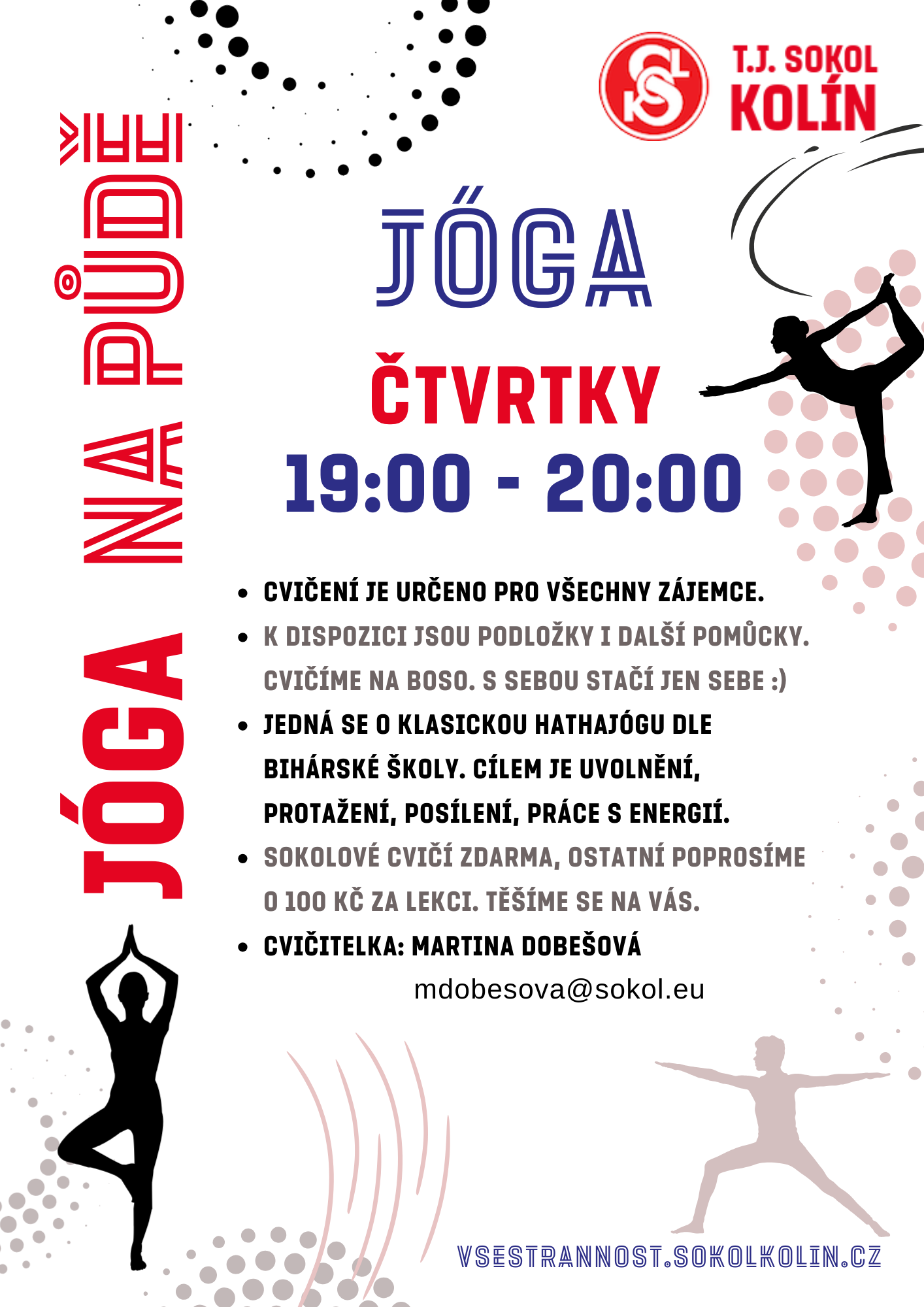 V rozvrhu cvičení nově naleznete ve čtvrtky Zálesák 17:30-18:00 (tedy před cvičením žáků a žákyň od 18:00) Jóga 19:00-20:00Těšíme se na vás!